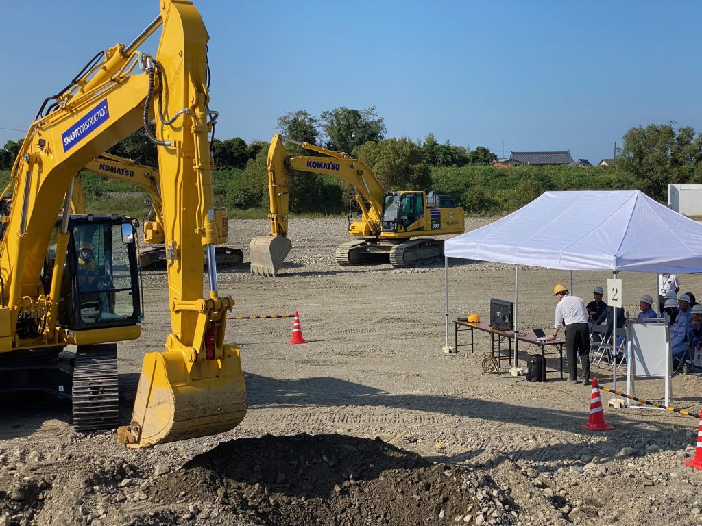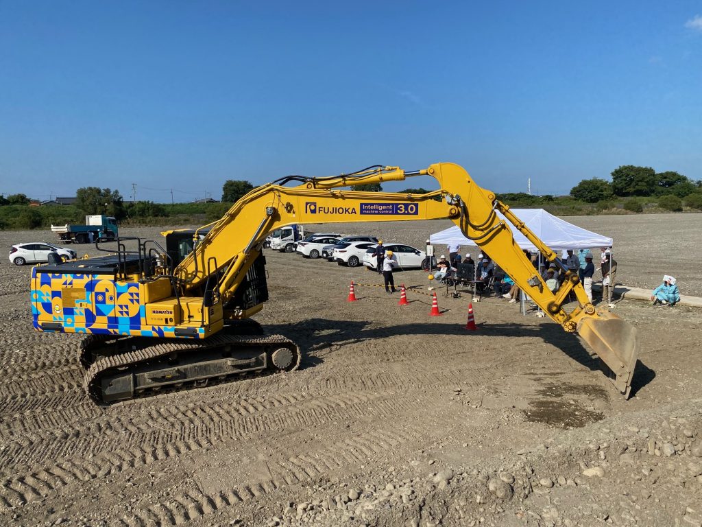 藤岡建設は「ICT施工の理想と現実」と題して講演を行い、現場では最新の建設重機や運行管理システムもご覧いただきました。